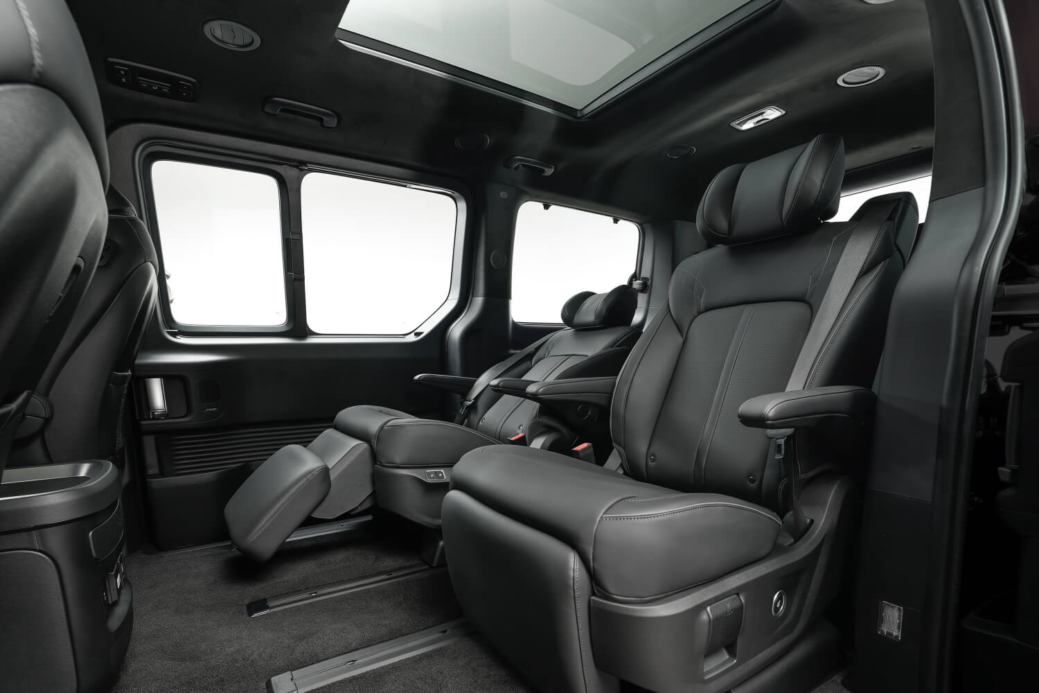 Kabinen er rummelig med fladt gulv og fleksible sædekonfigurationer, der skaber en eksklusiv, loungelignende atmosfære. Store glasflader giver et markant premium-udtryk og lukker masser af lys ind, hvilket forstærker oplevelsen af plads og åbenhed.